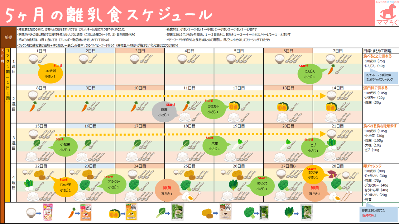5ヶ月の離乳食スケジュール(卵黄対応)