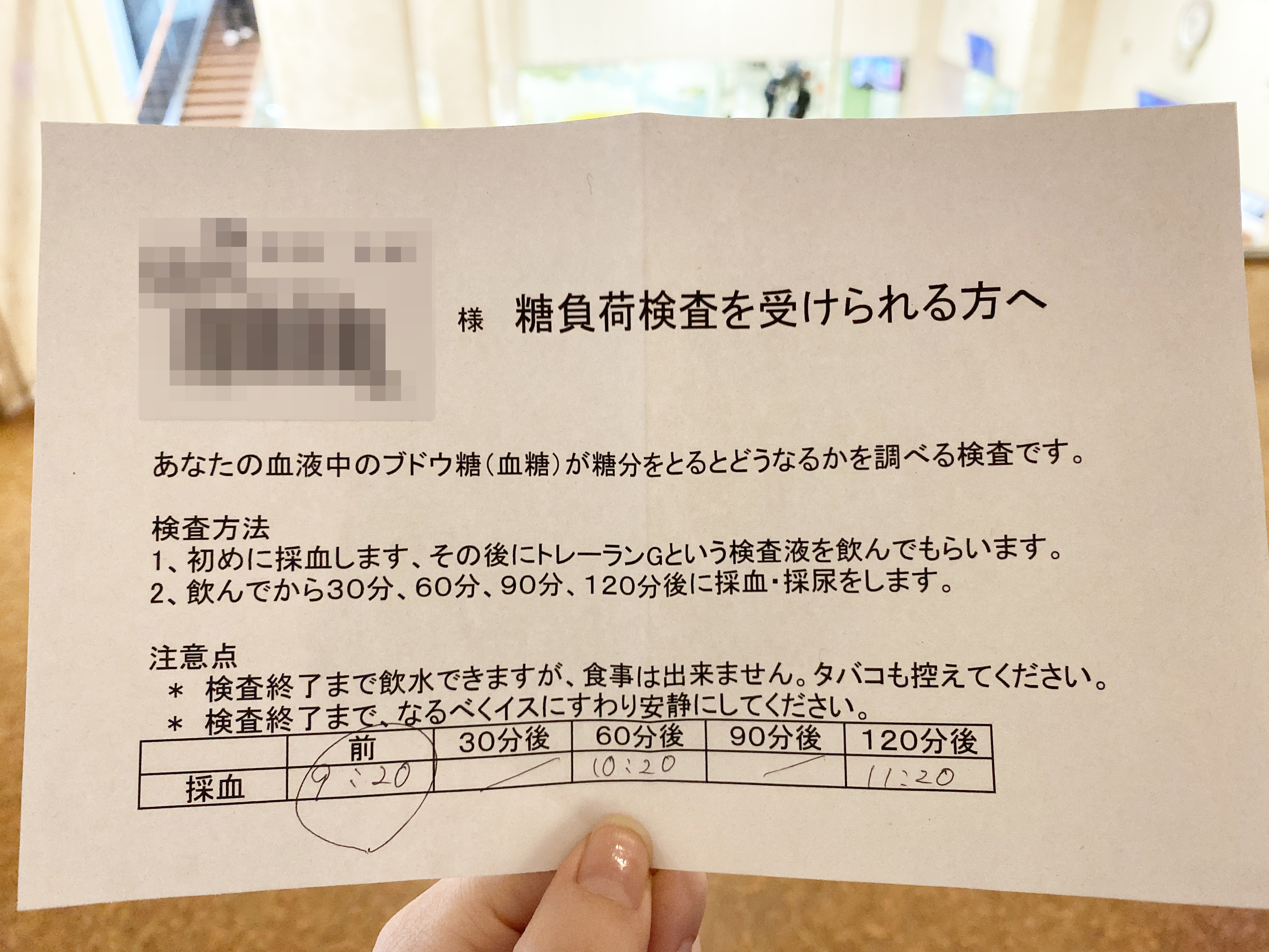 妊婦健診で血糖値が基準となる100を超えることが2回あり、里帰り先の病院でちゃんと調べた方がいいと言われ、糖負荷検査をすることになりました。